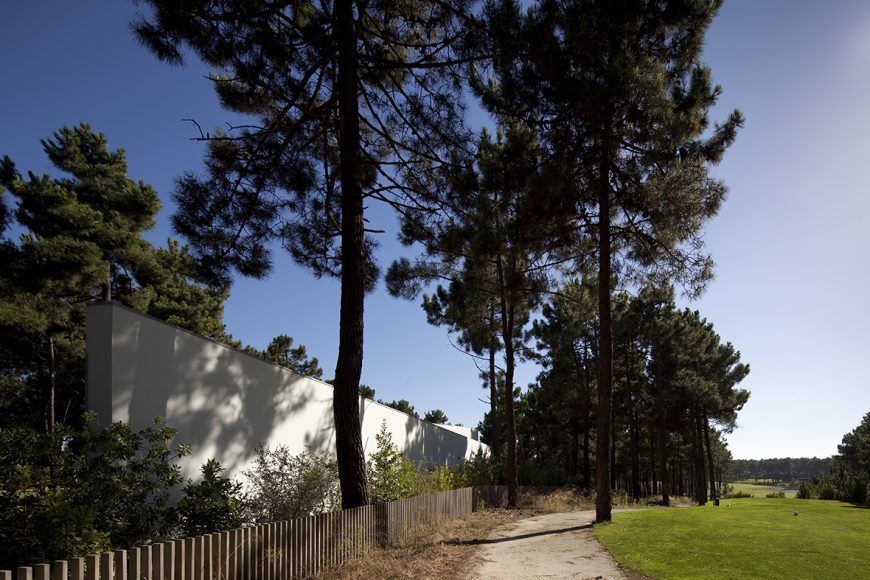 This is the second project for the urbanization of the Aroeira’s golf course.The terrain is narrow and long, slightly triangulated and with a soft inclination alongside the lot.