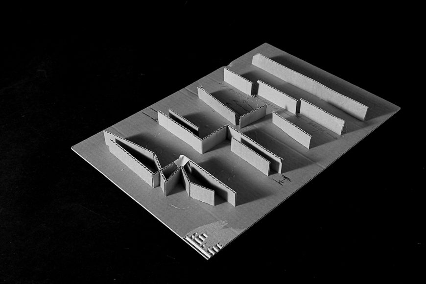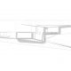 A casa materializa-se em três corpos contínuos, articulados em dois pátios. O primeiro corpo é longitudinal à entrada, de piso único, utilizado como garagem e serviços. O segundo é transversal e contém a vida comum da casa – a cozinha e as salas, sobrepostas em dois pisos, que se abrem para a paisagem.