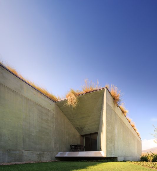 The house is defined as a material and tectonic volume, with a faceted and articulated geometry, strongly attached to the terrain. Despite being halfway up the slope, it is set in a hillside situation, enjoying a relative sensation and visual dominance over the landscape.