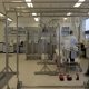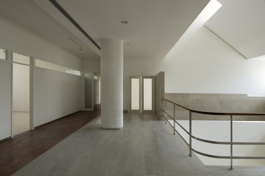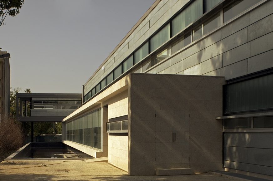 Natural light is homogeneous and filtered (as required for labs), through strips of industrial glass (murolux) that capture and spreads sunlight from east and west.