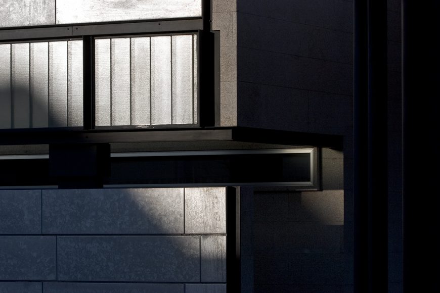 Inside the plot, the views towards the surroundings are cutout through long and narrow windows, transforming the chaotic environment into abstract views out of context.