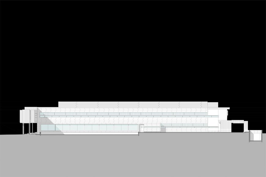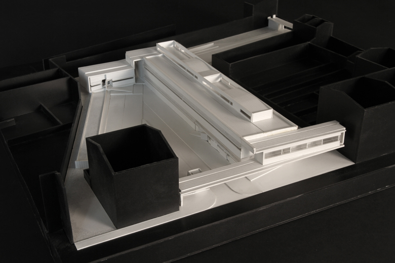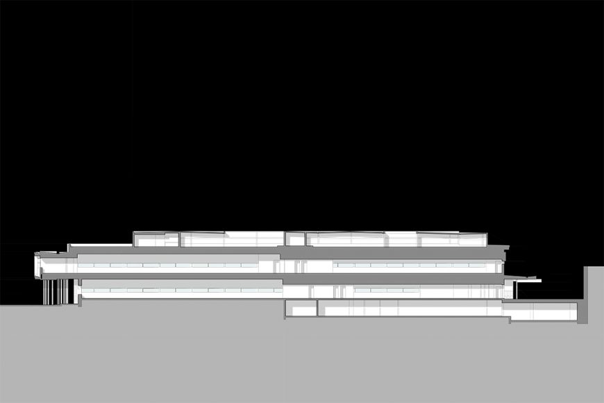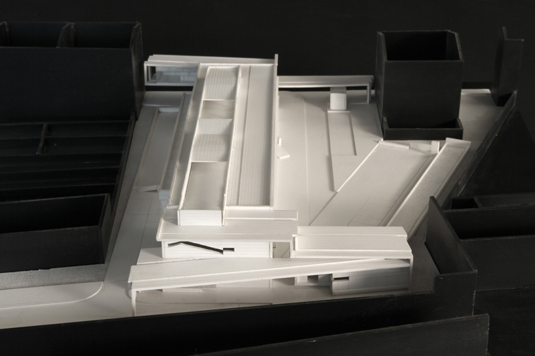 The building varies between a dominating systematic matrix of a technological nature and sparse subjectivities, as spontaneous reactions to the site.