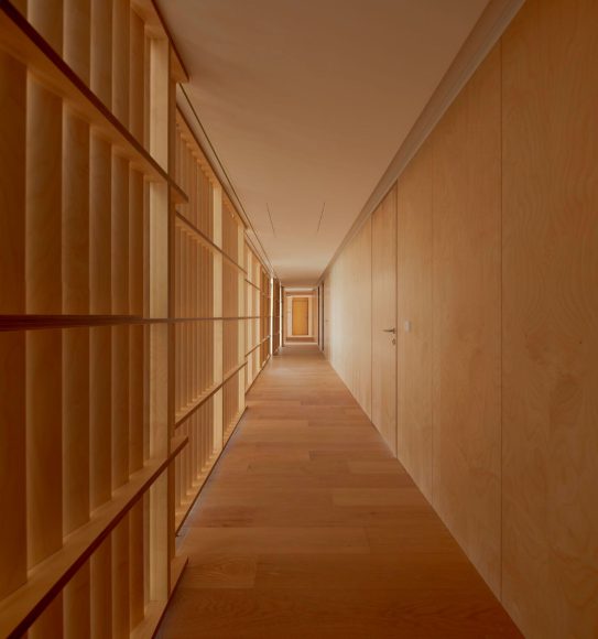 On the penthouse floor level, we find three private terraces of the apartments located on the top floor. With swimming pools and gardens for the exclusive use of each unit, these are accessed directly from inside the house by stairs that give access to small volumes/lanterns arranged on the roof. These constructions present themselves as architectural exceptions to the rigid rules of building composition, not only formally, but chromatically.