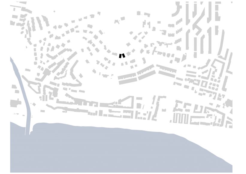 O ponto de partida é um lote localizado na Cruz Quebrada, Algés, entre a Rua Mata de São Mateus (Sul) e a Rua Sara Beirão (Norte), uma zona povoada por moradias de dimensões generosas que beneficiam de uma ótima exposição solar (Sul) e de uma vista panorâmica extraordinária sobre a foz do Tejo. Por si só estas características determinam a estratégia de desenho, mas, a singularidade da geometria do lote e da sua topografia, completam os temas de reflexão.